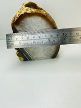 The Agate is approximately 10cm wide by 10cm high and 8cm deep in size and weighs approximately 1.16kg. Each candle holder has been cut on the bottom to ensure a flat surface and they have either rubber or felt on the bottom. This helps to protect the crystal and the surface underneath it.