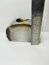 The Agate is approximately 12cm wide by 7cm high and 5cm deep in size and weighs approximately 770g. Each candle holder has been cut on the bottom to ensure a flat surface and they have either rubber or felt on the bottom. This helps to protect the crystal and the surface underneath it.