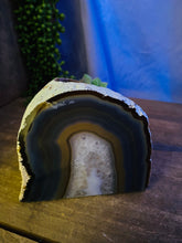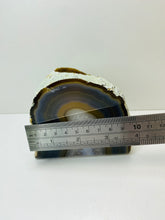 The Agate is approximately 10cm wide by 8cm high and 7cm deep in size and weighs approximately 900g. Each candle holder has been cut on the bottom to ensure a flat surface and they have either rubber or felt on the bottom. This helps to protect the crystal and the surface underneath it.