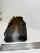 The Agate is approximately 8cm wide by 9cm high and 8cm deep in size and weighs approximately 600g. Each candle holder has been cut on the bottom to ensure a flat surface and they have either rubber or felt on the bottom. This helps to protect the crystal and the surface underneath it.