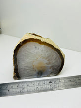 The Agate is approximately 10cm wide by 8cm high and 6cm deep in size and weighs approximately 680g. Each candle holder has been cut on the bottom to ensure a flat surface and they have either rubber or felt on the bottom. This helps to protect the crystal and the surface underneath it.