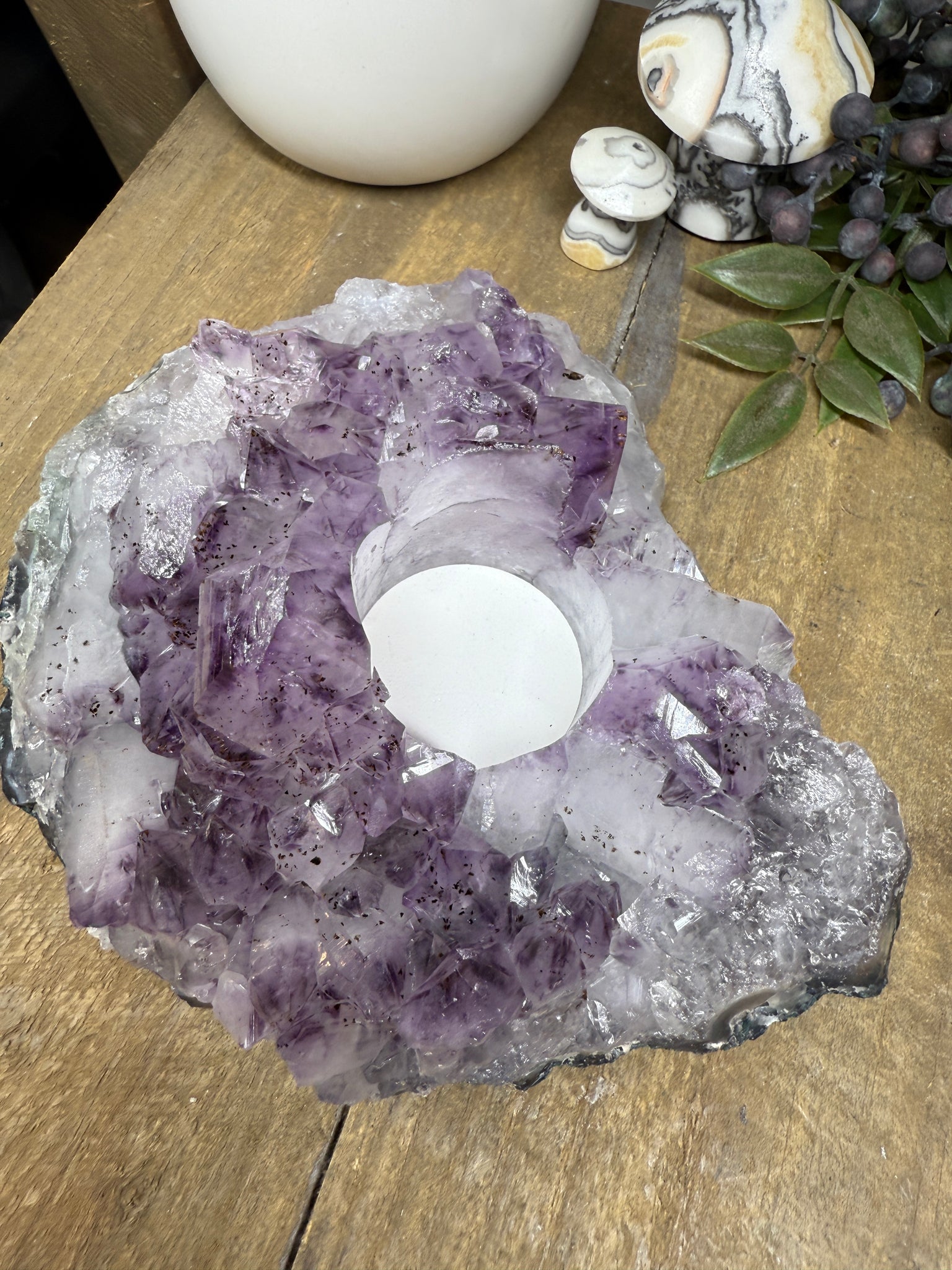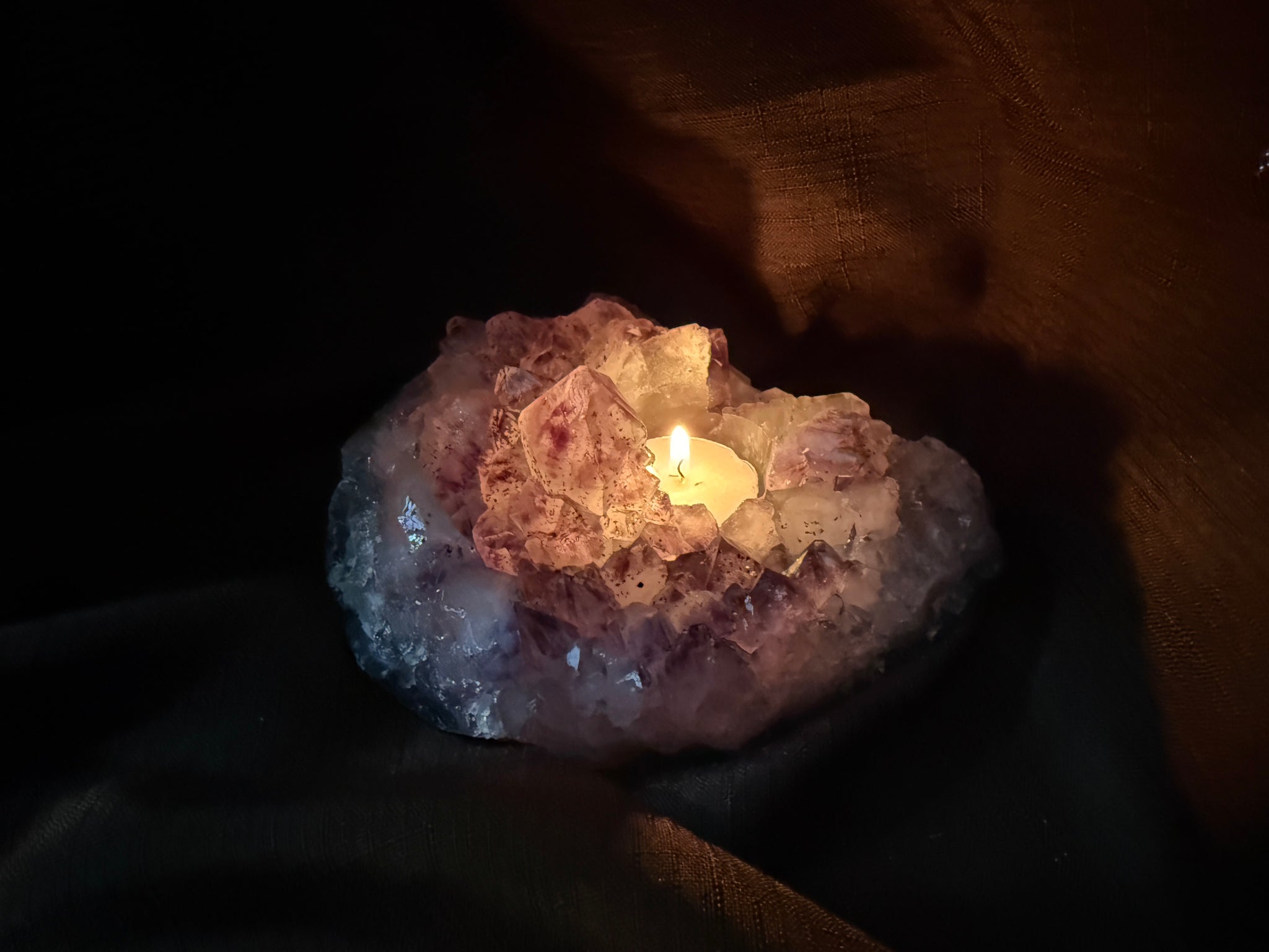 Natural Amethyst Crystal Tea Light Holder – Uruguay Home Decor