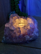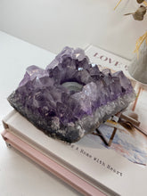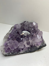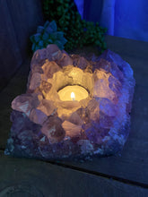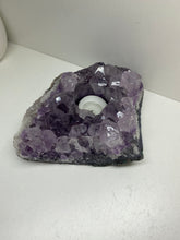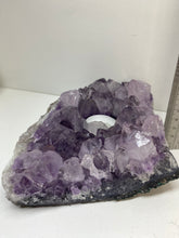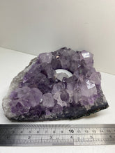 Natural Amethyst Crystal tea light candle holder. Made using high quality Amethyst with a rich purple colour. The Amethyst is from Uruguay and is in its natural state with beautiful naturally formed crystals.