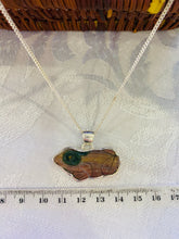 Ocean Jasper pendant set in sterling silver. This gorgeous piece of Ocean Jasper has been delicately carved into the shape of a frog and then finished with Sterling Silver around the edges.