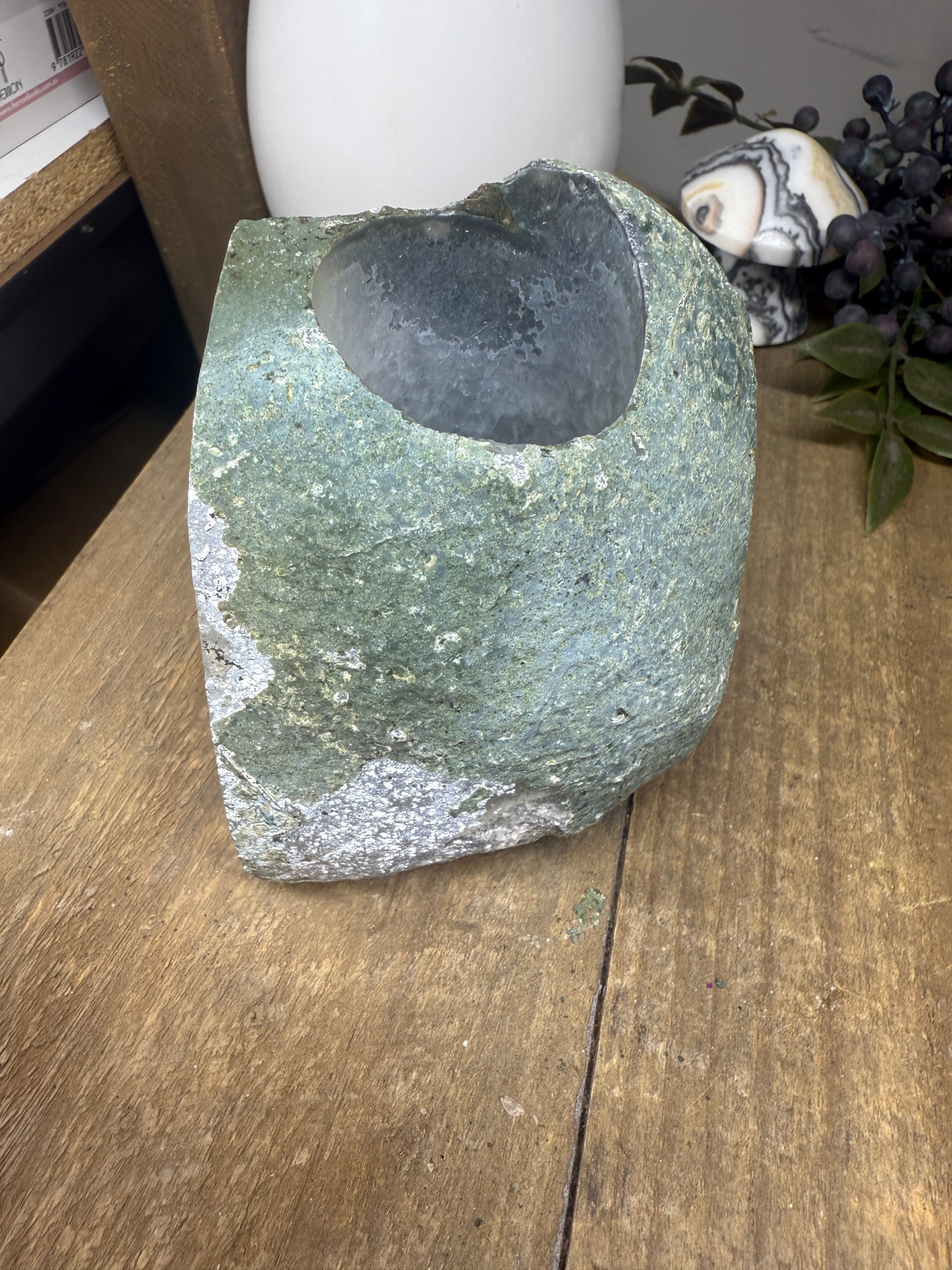 Illuminate your space with the calming energy of this Natural Agate Tea Light Candle Holder. Hand‑crafted from genuine agate stone, each piece is cut in half, and polished to reveal its naturally occurring rings, sparkling geodes, and crystal formations. Designed to hold a tea light candle, this crystal décor piece blends functionality with natural beauty.