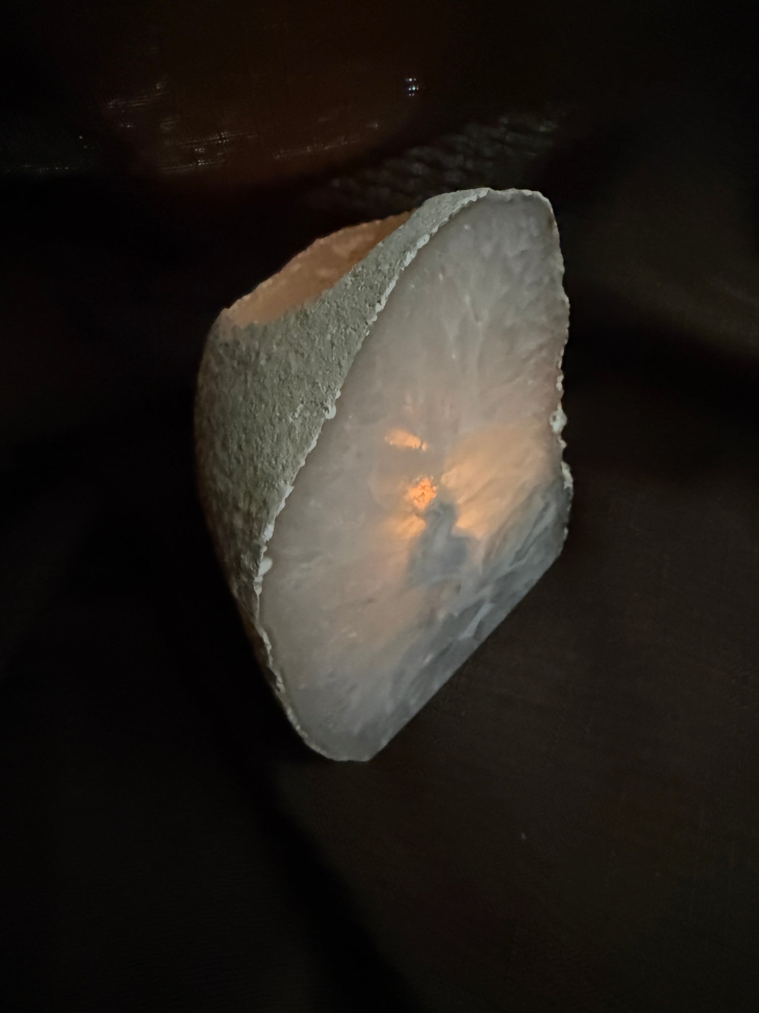 Illuminate your space with the calming energy of this Natural Agate Tea Light Candle Holder. Hand‑crafted from genuine agate stone, each piece is cut in half, and polished to reveal its naturally occurring rings, sparkling geodes, and crystal formations. Designed to hold a tea light candle, this crystal décor piece blends functionality with natural beauty.