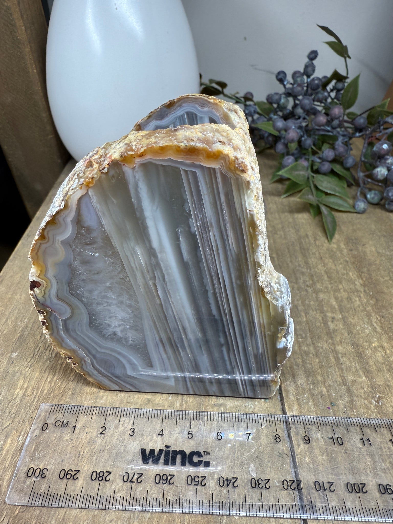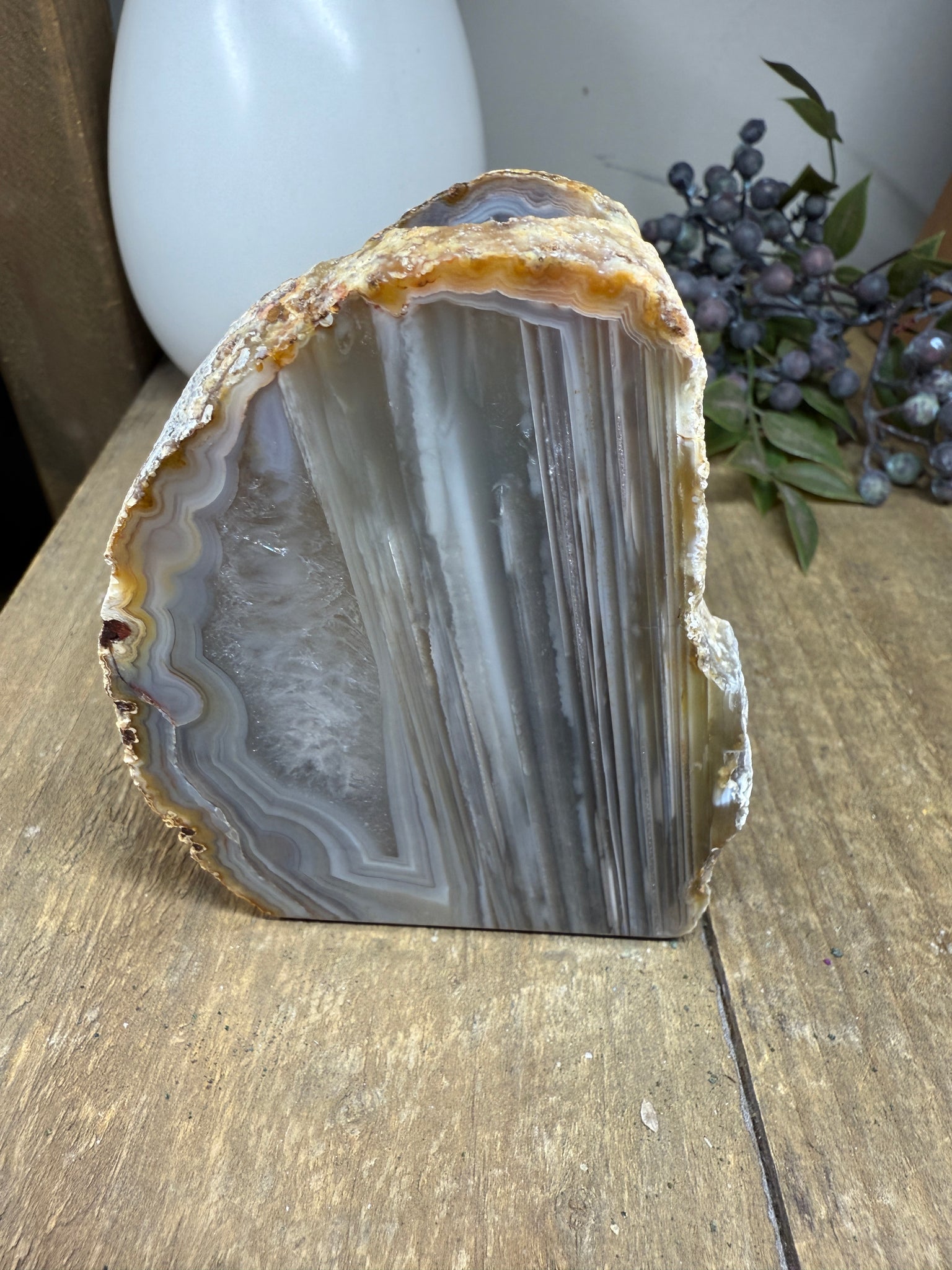 - Polished to highlight unique rings, geodes, and crystal textures