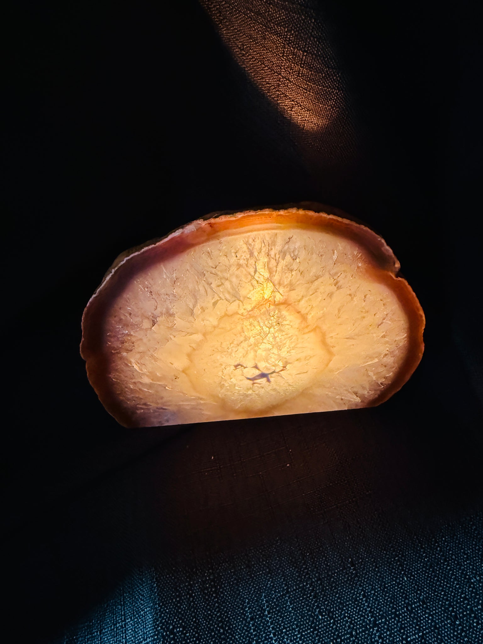 Illuminate your space with the calming energy of this Natural Agate Tea Light Candle Holder. Hand‑crafted from genuine agate stone, each piece is cut in half, and polished to reveal its naturally occurring rings, sparkling geodes, and crystal formations. Designed to hold a tea light candle, this crystal décor piece blends functionality with natural beauty.