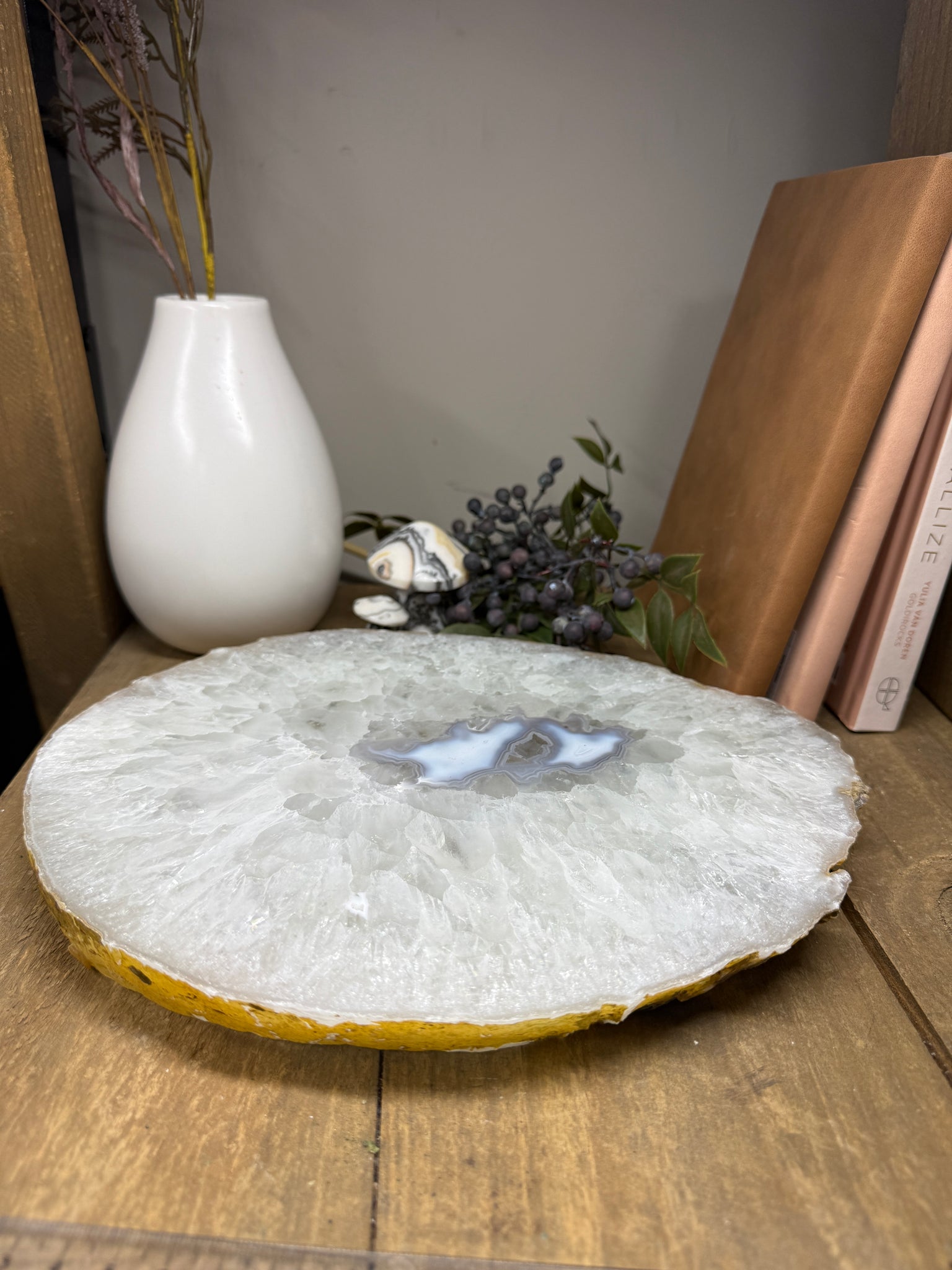 Large Polished Natural Agate Slice – Unique Home Décor, Serving Platter or Display Piece