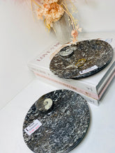 Polished Fossil Ammonite Orthoceras dish.
