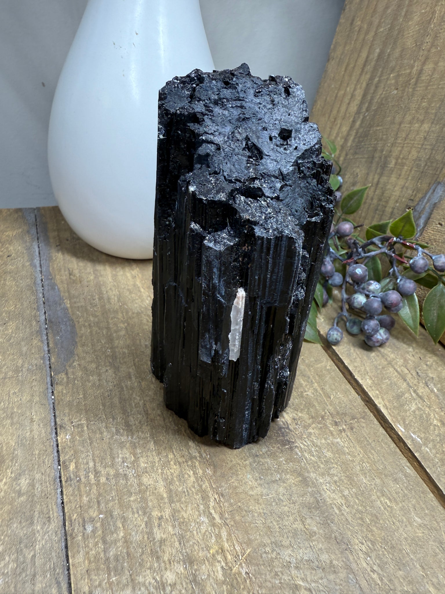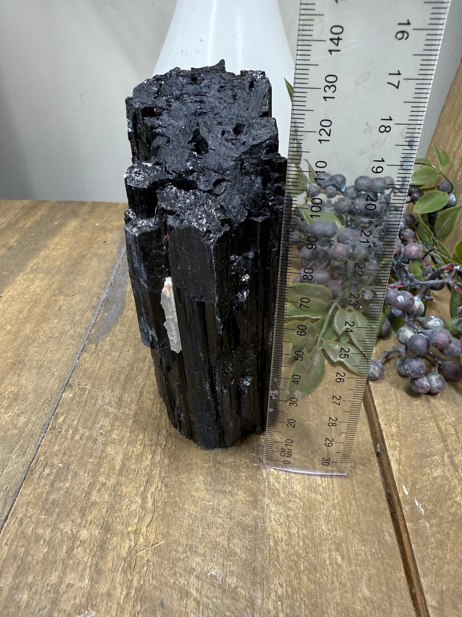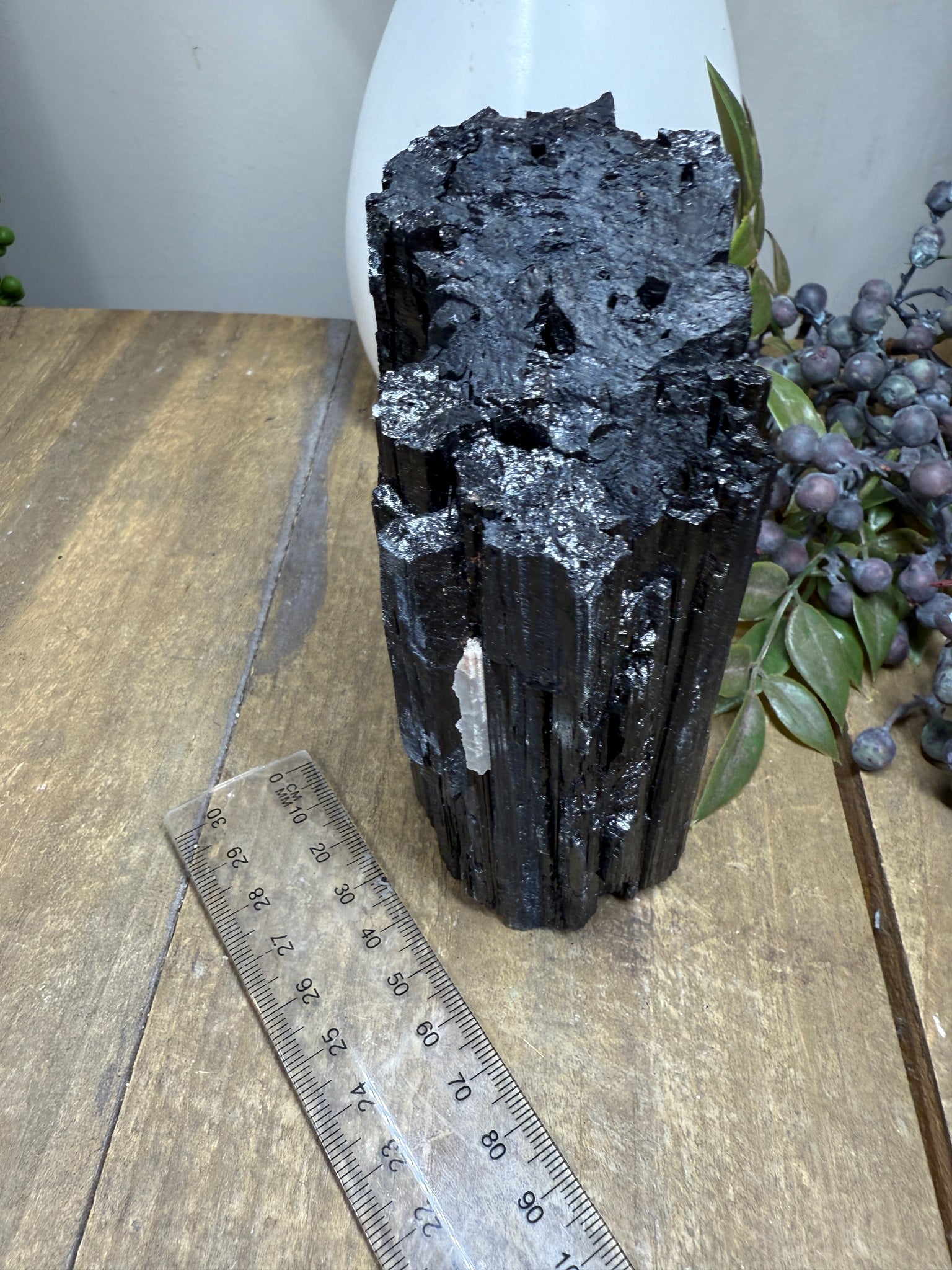 This gorgeous piece of natural Black Tourmaline is approximately 7x6cm in diameter and 12cm high and weighs approximately 730g.