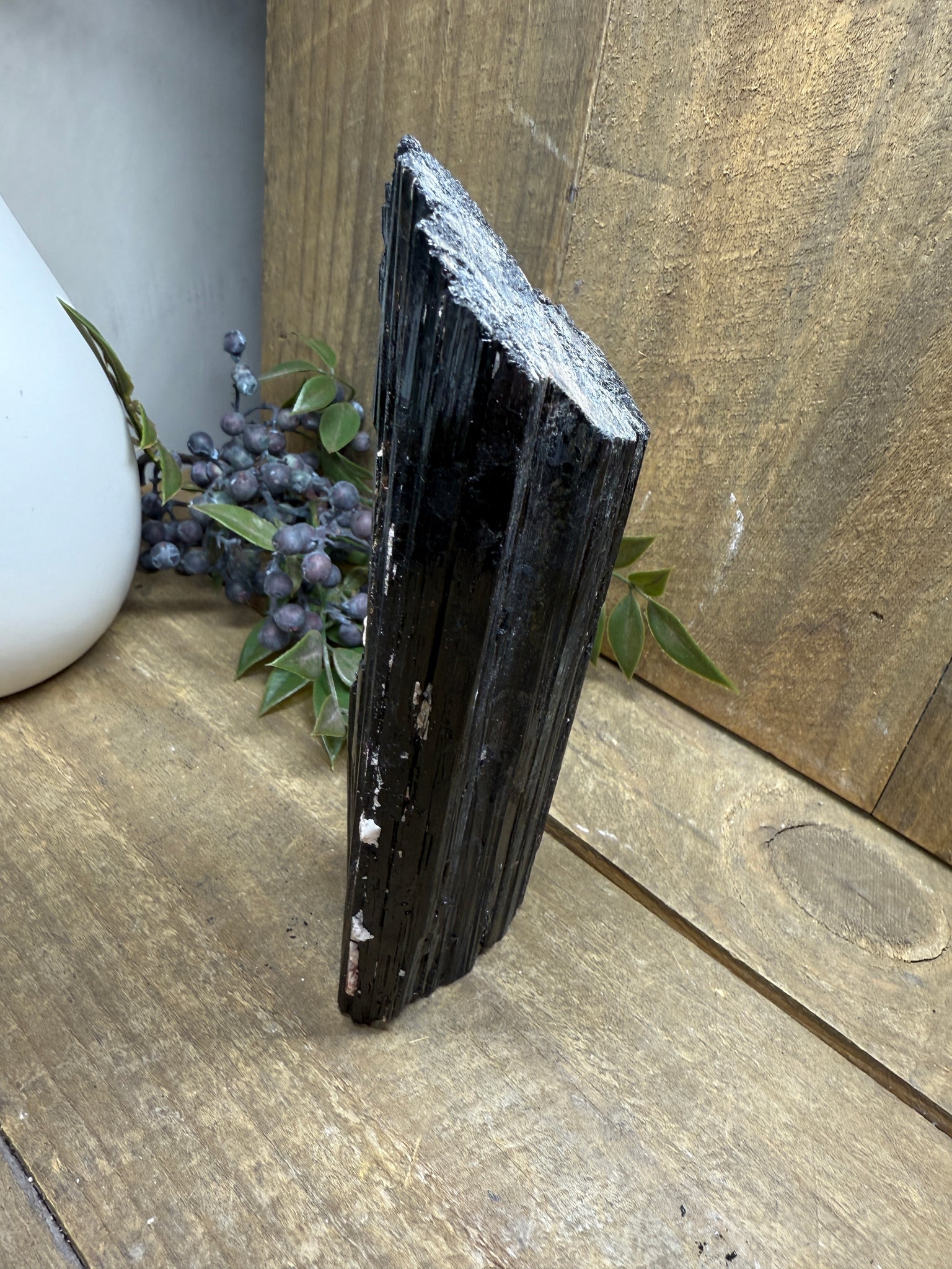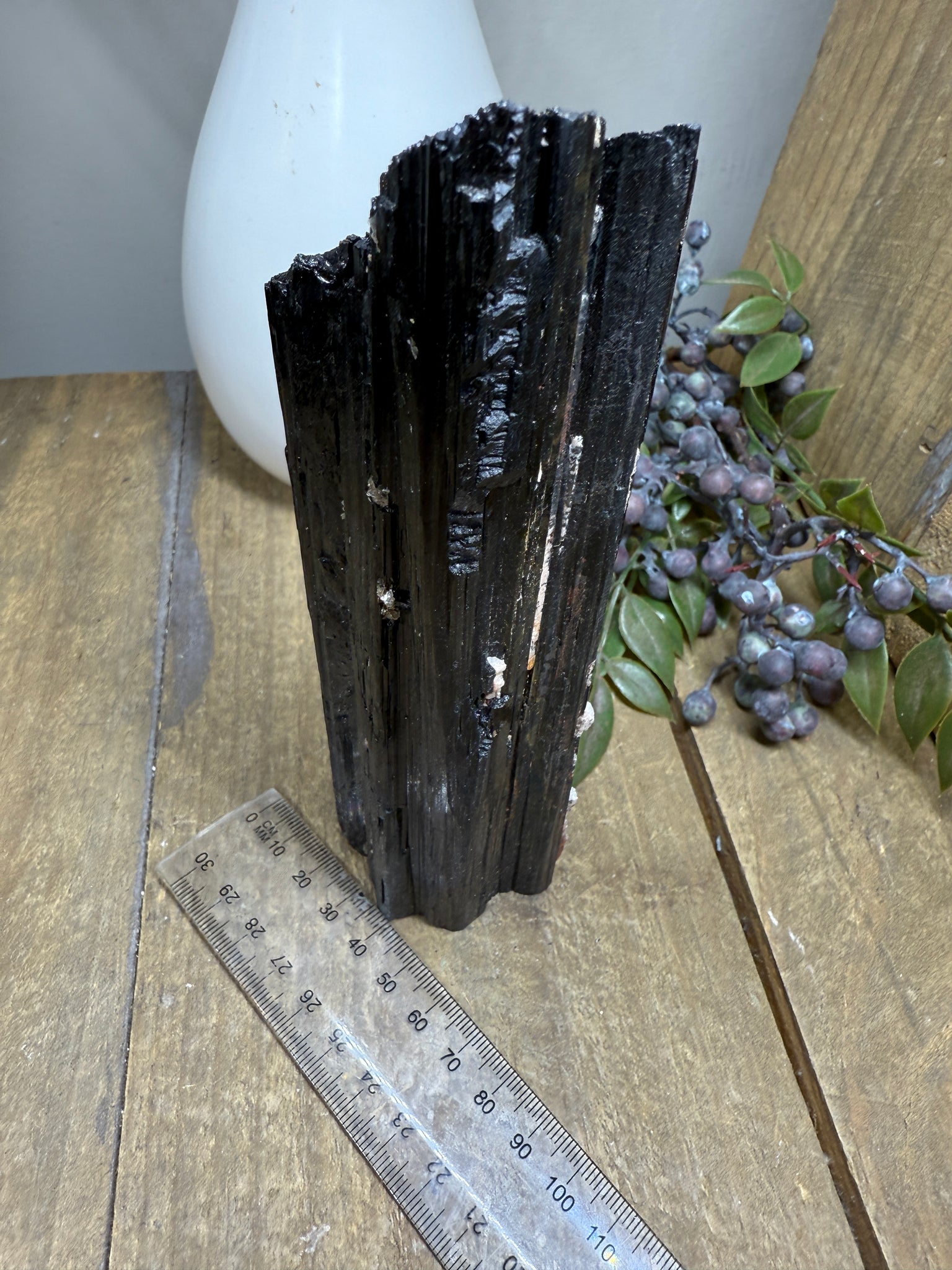 This gorgeous piece of natural Black Tourmaline is approximately 6x4cm in diameter and 17cm high and weighs approximately 610g.