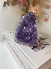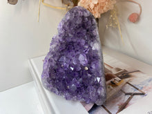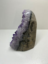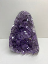 Natural Amethyst Crystal that has been cut at the base to ensure it sits perfectly on the surface of your choosing. The Amethyst is from Uruguay and is in its natural state with beautiful naturally formed crystals. The back of the Amethyst Crystal has its natural formed rock which has been carefully cut to make for that perfect display piece.