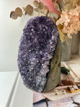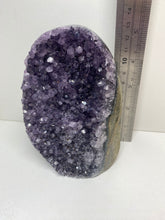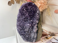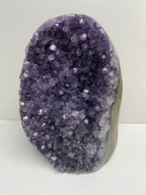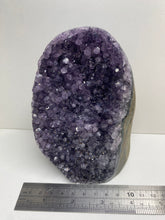 Natural Amethyst Crystal that has been cut at the base to ensure it sits perfectly on the surface of your choosing. The Amethyst is from Uruguay and is in its natural state with beautiful naturally formed crystals. The back of the Amethyst Crystal has its natural formed rock which has been carefully cut to make for that perfect display piece.