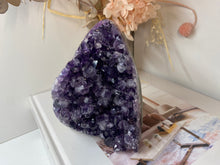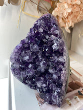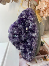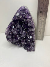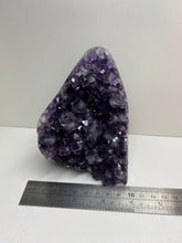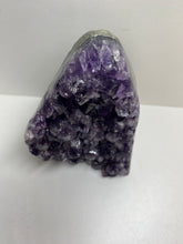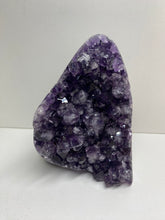 Natural Amethyst Crystal that has been cut at the base to ensure it sits perfectly on the surface of your choosing. The Amethyst is from Uruguay and is in its natural state with beautiful naturally formed crystals. The back of the Amethyst Crystal has its natural formed rock which has been carefully cut to make for that perfect display piece.