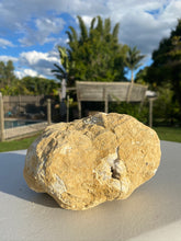 Unique and one of a kind Clear Quartz Geode Pair. This geode was found as a whole piece and was then broken in half to reveal delicate and sparkling clear quartz crystals inside. Comes with matching halves for a complete geode. This geode is in it's natural state as found.