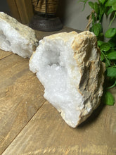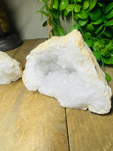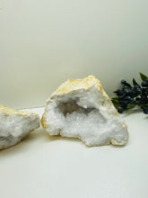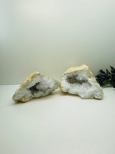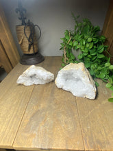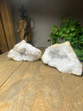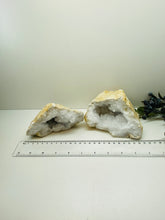 Unique and one of a kind Clear Quartz Geode Pair. This geode was found as a whole piece and was then broken in half to reveal delicate and sparkling clear quartz crystals inside. Comes with matching halves for a complete geode. This geode is in it's natural state as found.