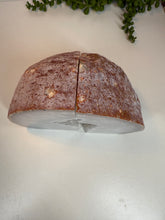 Polished Natural Agate book ends. These book ends are a natural stone, cut in half, and then polished to reveal naturally occurring patterned rings, geodes and crystals inside. These bookends are truly unique as they can be used in different directions (see photographs where it changes the look).