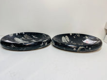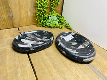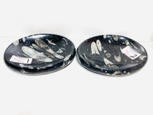 The fossil bowls are approximately 14cm by 10cm and 2cm high and weigh approximately 440g each.