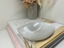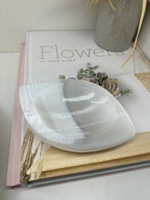 Selenite boat bowl. Perfect for a bedroom or living room to incorporate natural stones into your life and to hold your precious items. This has been hand caved into the shape of a boat.