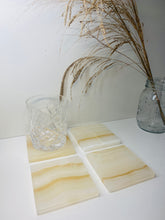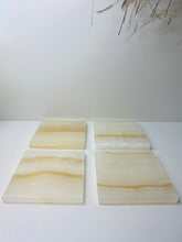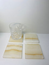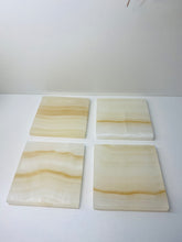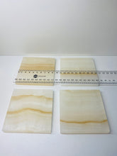 Set of 4 polished natural Onyx slices. These Onyx Coasters are sliced natural stones that have been polished to reveal naturally occurring patterned rings, colours and crystals.