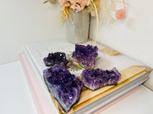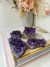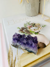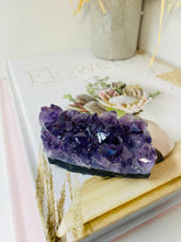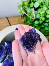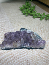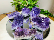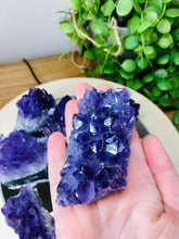 Small natural Amethyst Crystal cluster, AAA+ quality. The Amethyst is from Uruguay and is in its natural state with beautiful naturally formed crystals. Made using high quality Amethyst with a rich purple colour. Item will perfectly compliment any living room, or bedroom and is a unique way to display natural crystals in the home.
