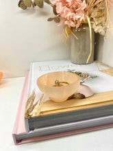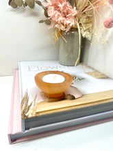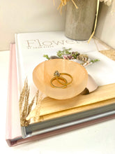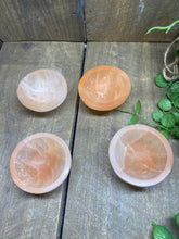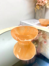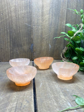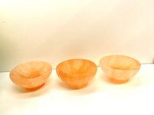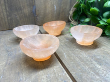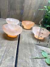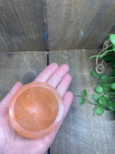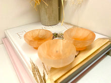 Small orange Selenite bowl. Selenite is a soft natural stone that has been caved into the shape of these cute bowls.